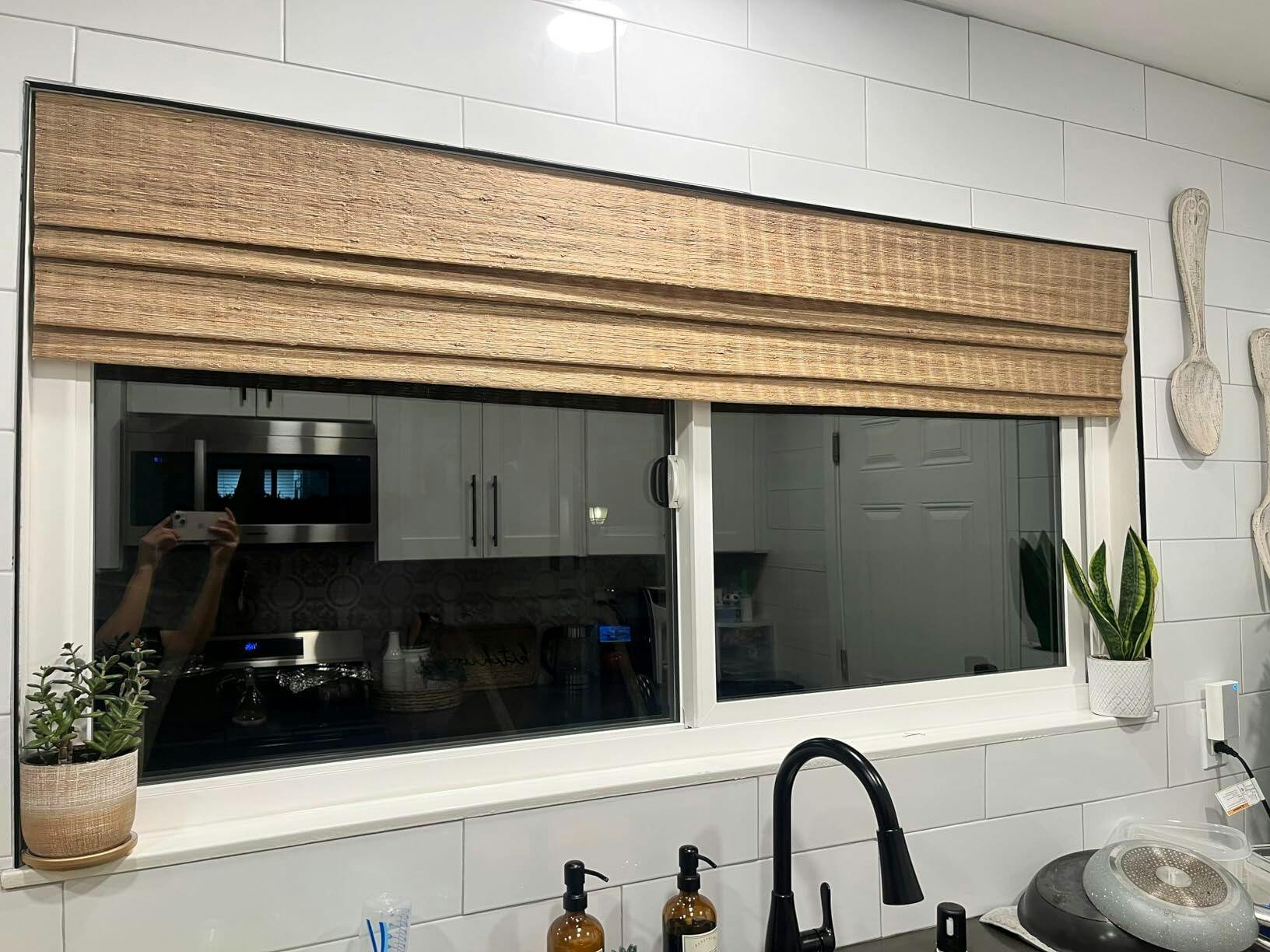 For the inside mount, subtract 3/8 inches from the measured window opening width, so the shade fits and operates smoothly.